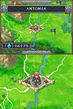 Antonia is divided into five main areas: Archineer Square, Antonia West, Antonia North, Antonia East, and Antonia South. Each area except Archineer Square has a guard tower where the Siege minigame can be played, and a gate leading to the World Map. There is a river that runs through Antonia East and Antonia South.